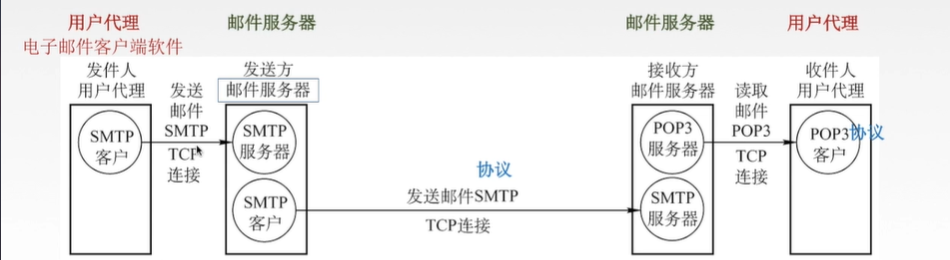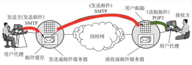 - 发信人在撰写完邮件后,要利用邮件发送协议发送到用户所使用的邮件服务器。收件人在接收邮件时,要使用邮件读取协议从本地邮件服务器接收邮件。