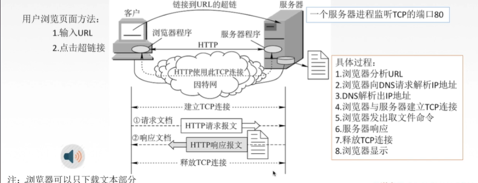 HTTP协议定义了浏览器(万维网客户进程)怎样向万维网服务器请求万维网文档,以及服务器怎样把文档传送给服务器