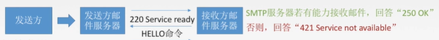- 邮件发完,SMTP客户发送QUIT命令,SMTP服务器返回“221”,表示同意释放TCP连接。