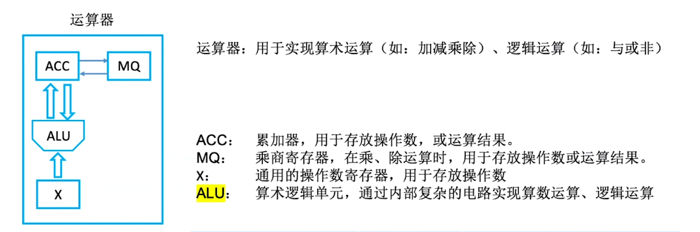 运算器:用来实现算术运算(如:加减乘除、逻辑运算【与或非】)
