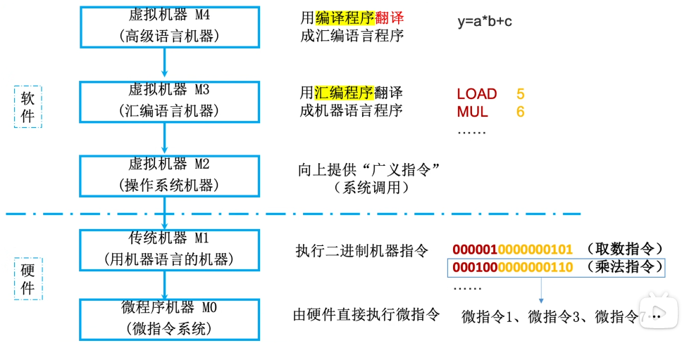 可以简单将软硬件看作一个层次结构,硬件为软件提供接口,系统软件又为应用软件形成接口,来完成不同的程序。