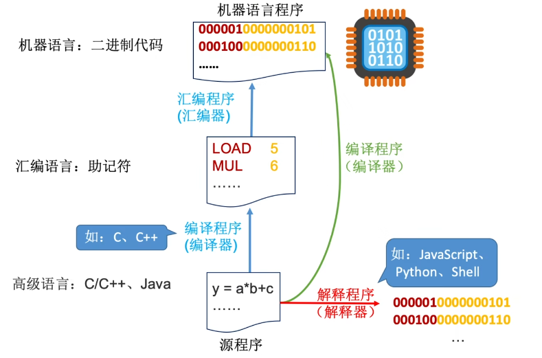 - 语言处理程序(将高级语言转换为机器可以懂的指令)