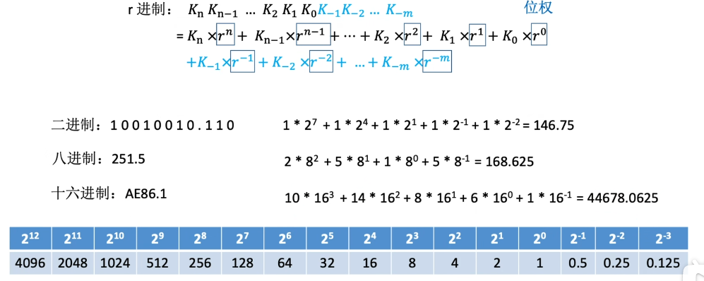 - 阶码E反映浮点数的表示范围及小数点的实际位置;