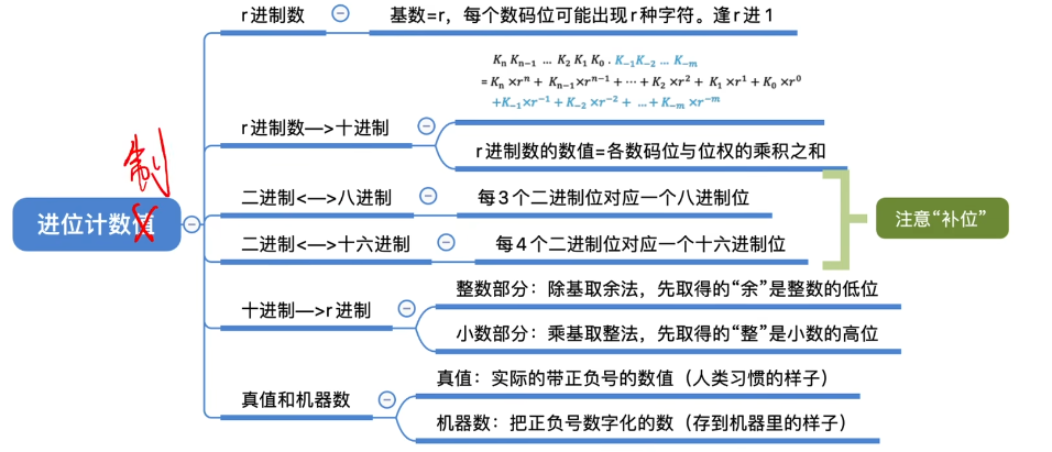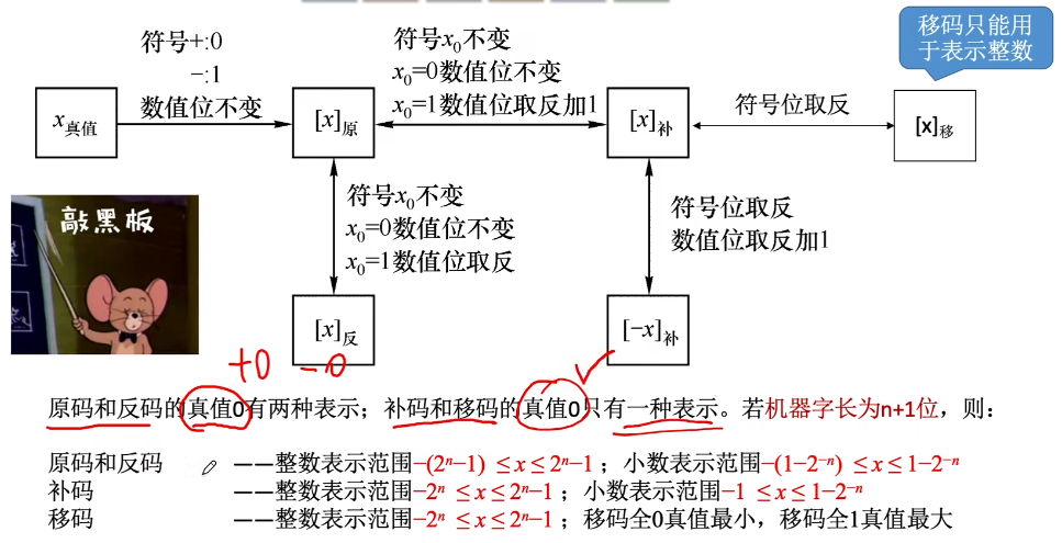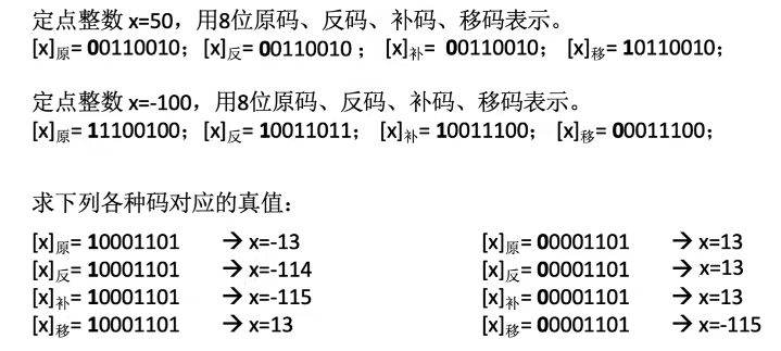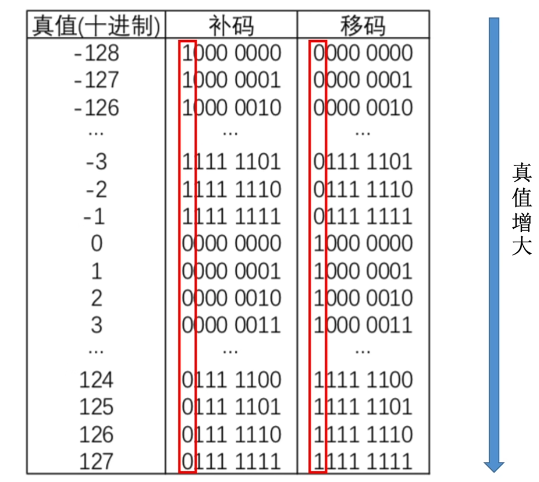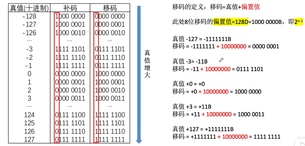移码:补码的基础上将符号位取反。【注意:移码只能用于表示整数】