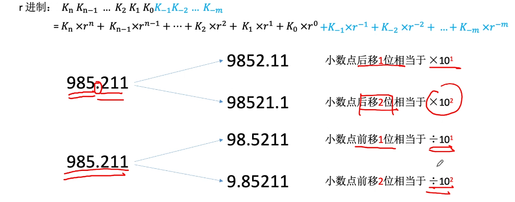 尾数给出一个小数,阶码指明了小数点要向前/向后移动几位