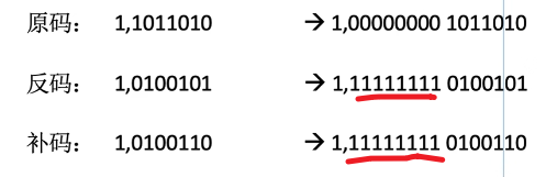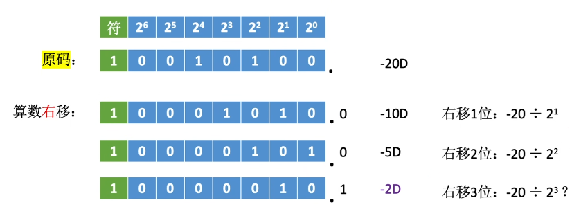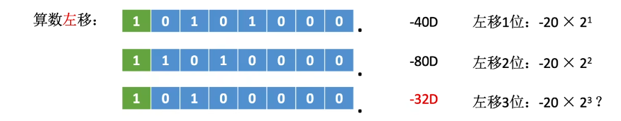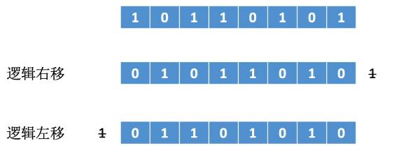 注:补码算数左移,低位补0;补码算数右移,高位补1.