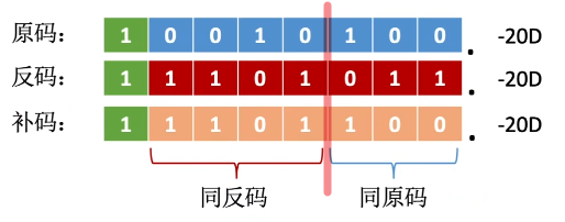 - 负数为1.1* 的形式,其最大值表示为1.10…0;最小值表示为1.11…1