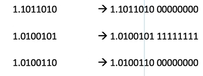 - 当浮点数运算的结果为非规格化时要进行规格化处理,将尾数算数左移一位,阶码减1。