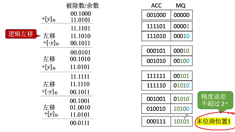 注:采用“双符号位”,当移除发生时,可以挽救。更高的符号位是正确的符号位。