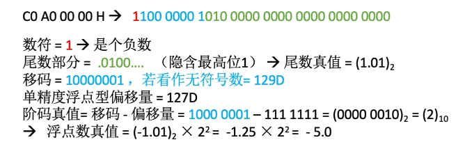 【例】IEEE 754的单精度浮点数 C0 A0 00 00 H的值是多少