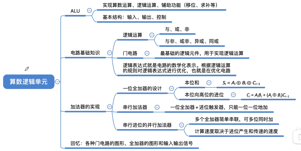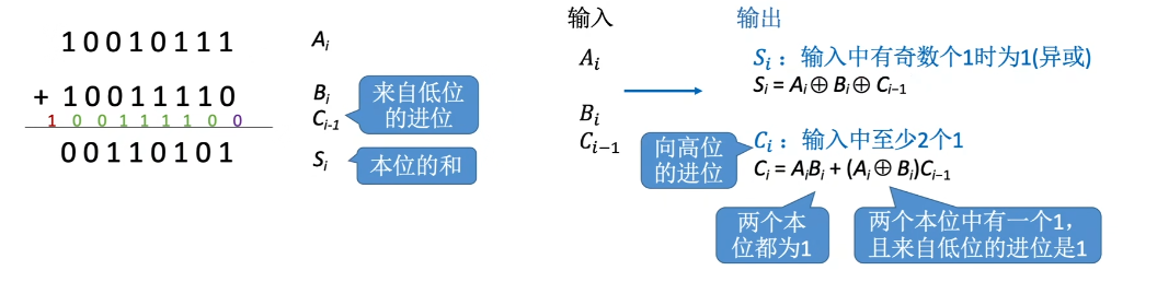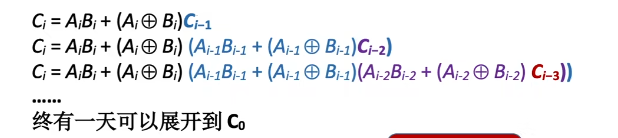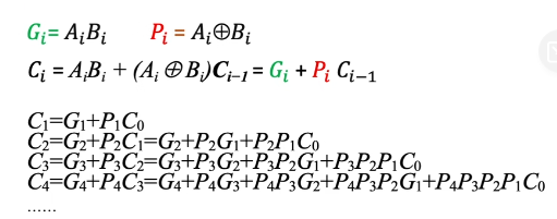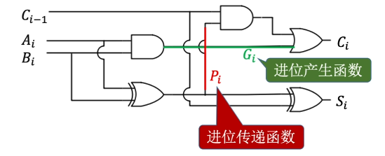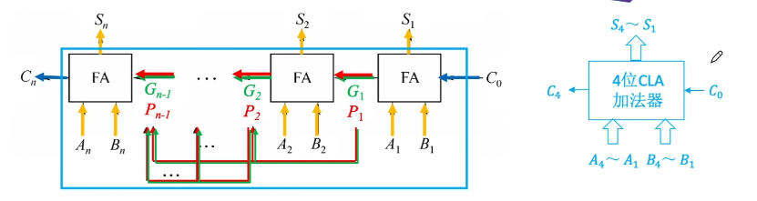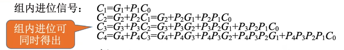 并行进位的并行加法器:各级进位信息同时形成,又称为先行进位、同时进位