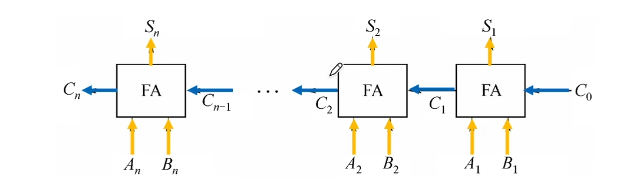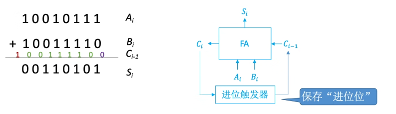 如果操作数长n位,加法就要分n次进行,每次产生一位和,并且串行逐位地送回寄存器。