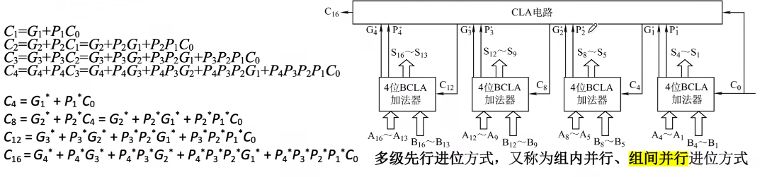 多级先行进位方式,又称组内并行、组间并行进位方式。
